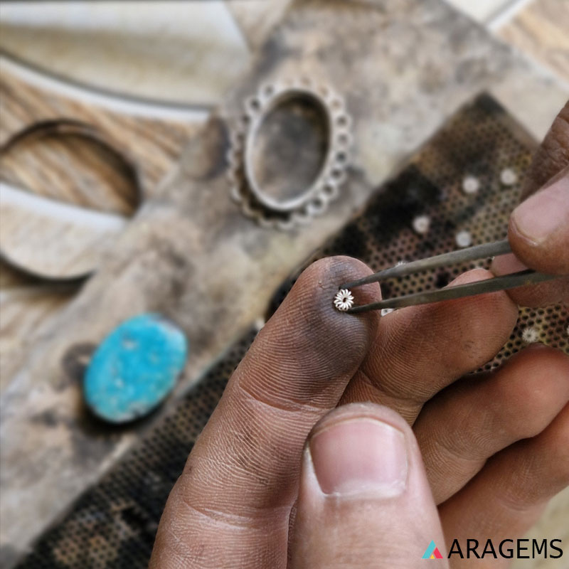 Handcrafted with Neyshabur Persian Turquoise and 950 Sterling Silver by ARAGEMS