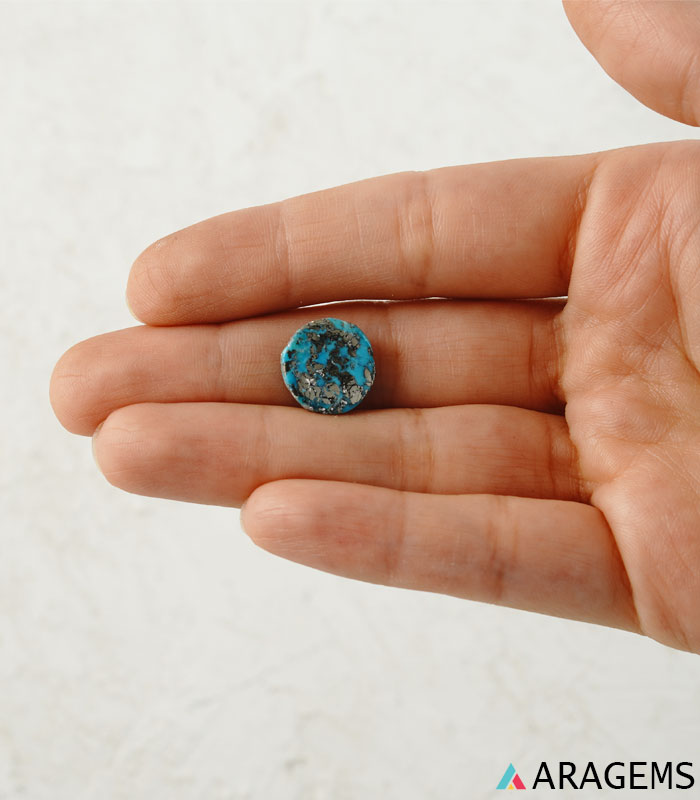 Kerman Turquoise with Pyrite Inclusions – Natural Round Gemstone-T5